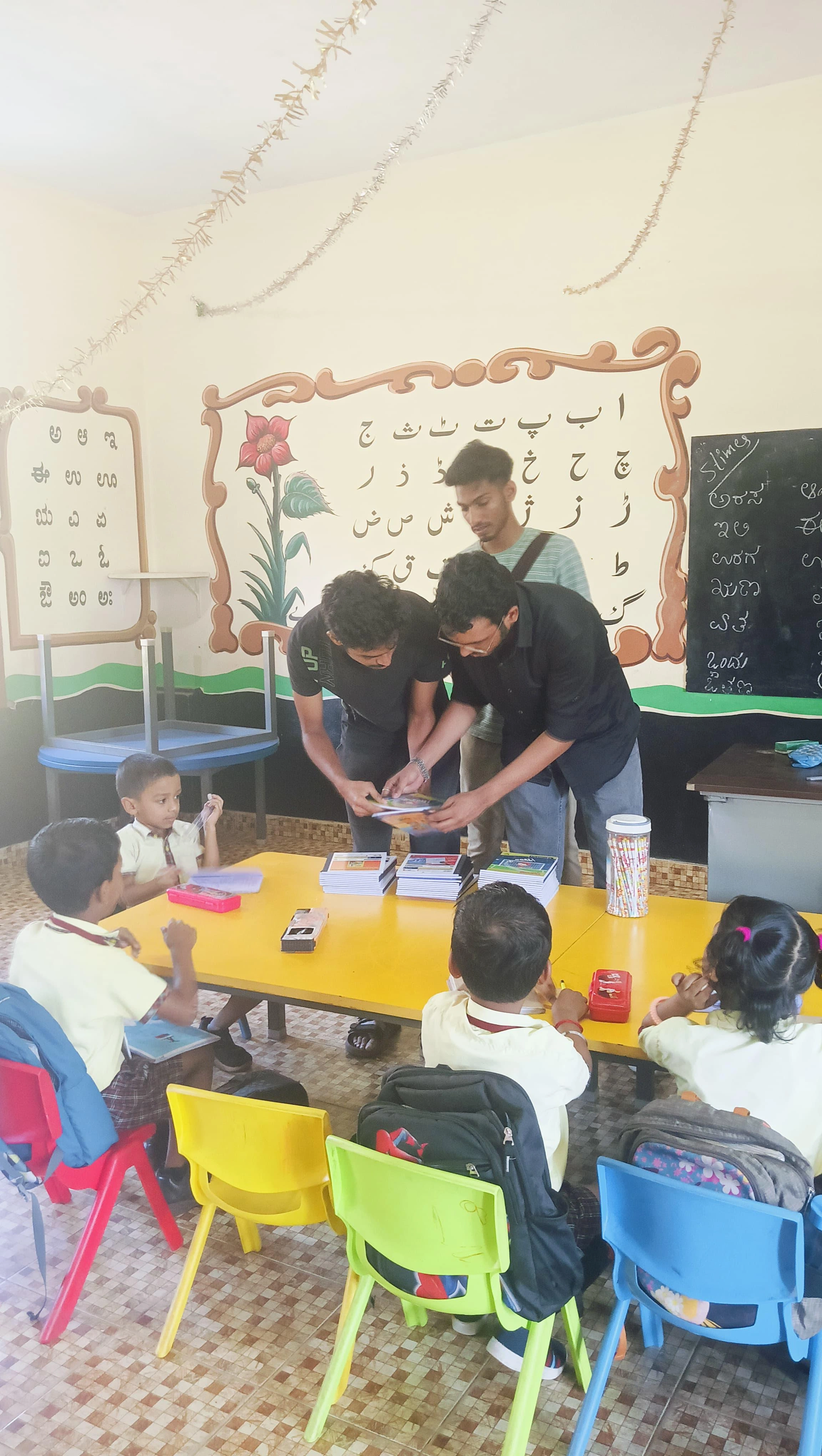 We distribute notebooks and stationery to students in need. In December 2024, we contributed ₹10,000 to support students at Urdu English Medium School, Ganjimutta.